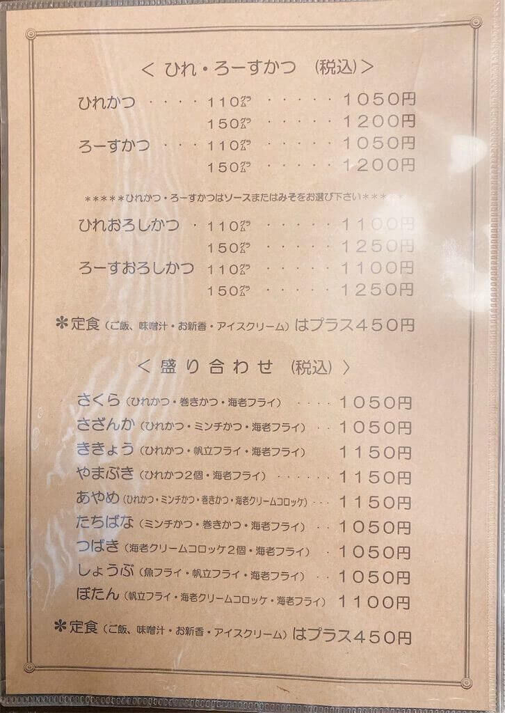 メニューはこちら!今回は食べログの評価が高かった、ヒレカツ 150gを注文🤤