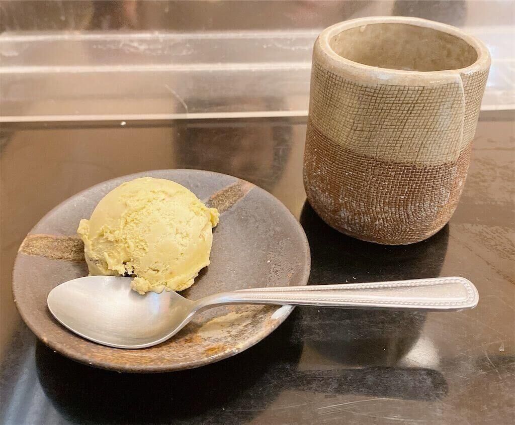 食後にピスタチオアイスもついてきて、名店にもかかわらず流行を抑えた完璧なランチセット🍨
