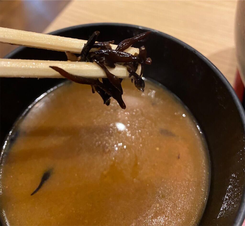 お味噌汁にはひじきが入っており、栄養もバッチリ取れます。あおさとかひじきとか入ってる味噌汁好きなんですよね🌊